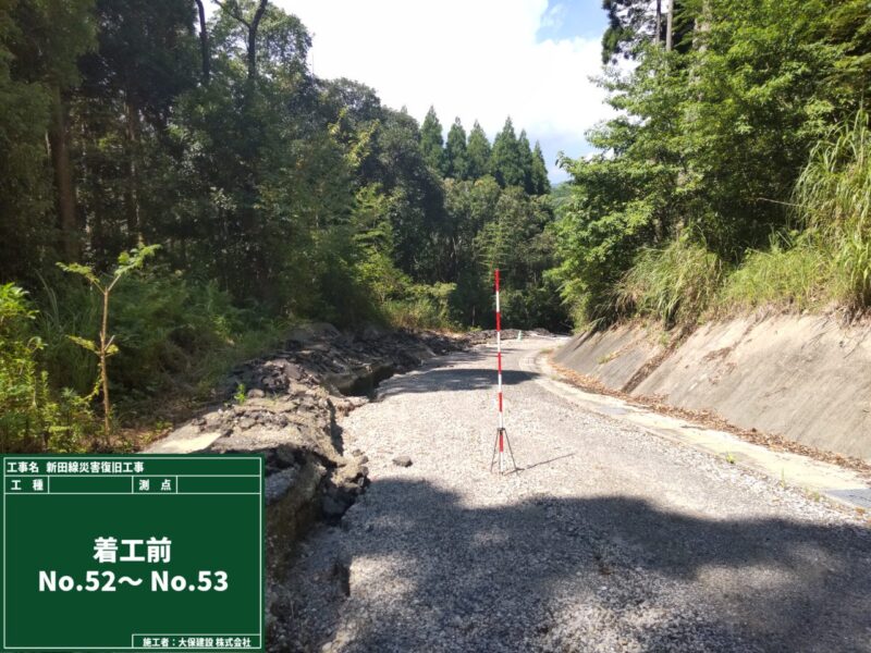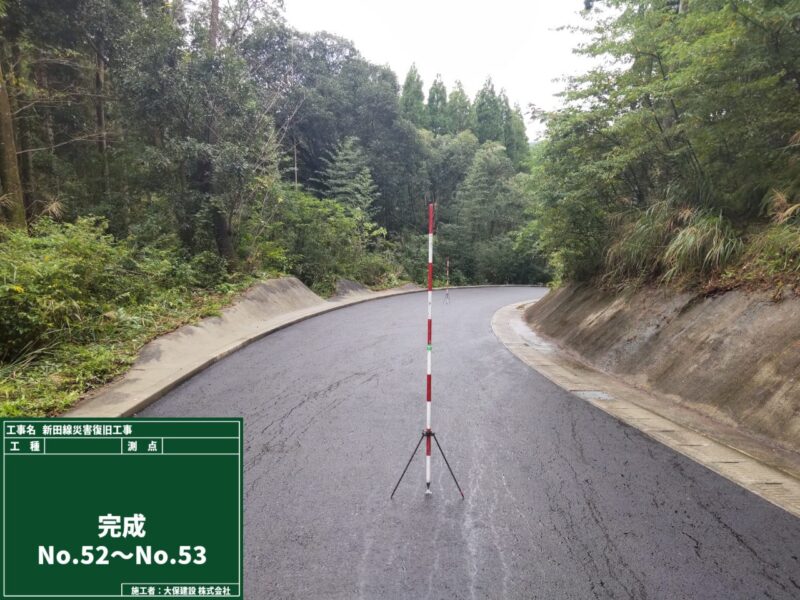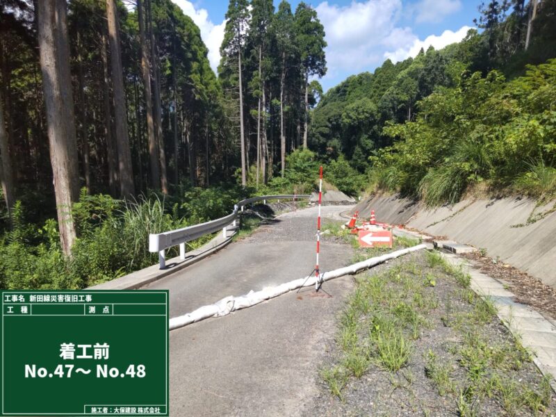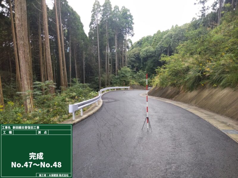 新田線災害復旧工事 施工の概要 工事名 新田線災害復旧工事 工事場所 鹿児島市喜入町 発注者 鹿児島市谷山建設課喜入建設事務所 竣工日 2025年11月11日 備考 工事概要 土工 1式 取壊工 1式 排水工 1式 舗装工 1式 交通安全施設工 1式 仮設工 1式 画像クリックで拡大